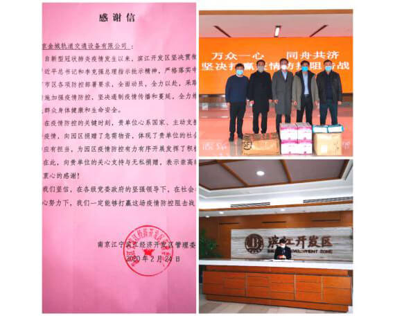 ![]() 集團(tuán)多次向江寧濱江開發(fā)區(qū)管委會捐贈口罩、防護(hù)服、橡膠手套等戰(zhàn)“疫”急用物資。 |