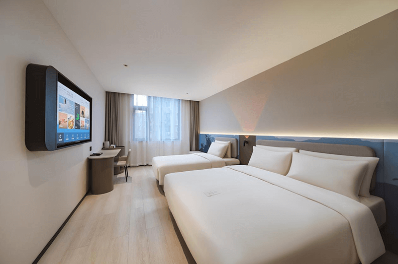 北銀橋輕居酒店簡潔明快、舒適溫馨,擁有客房80間,配備餐廳、健身房、洗衣房等附屬設施,秉承“輕社交、輕生活”的理念,突出“城市旅行”的主題,致力于打造有溫度、有情感的高品質居住空間。