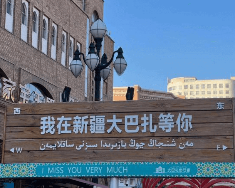 巴扎是維吾爾語,意為集市、農貿市場,它遍布新疆城鄉。新疆國際大巴扎于2004年入選烏魯木齊市“十佳建筑”,具有濃郁的伊斯蘭建筑風格,在涵蓋了建筑的功能性和時代感的基礎上,重現了古絲綢之路的繁華,集中體現了濃郁西域民族特色和地域文化,是“新疆之窗”、“中亞之窗”和“世界之窗”。