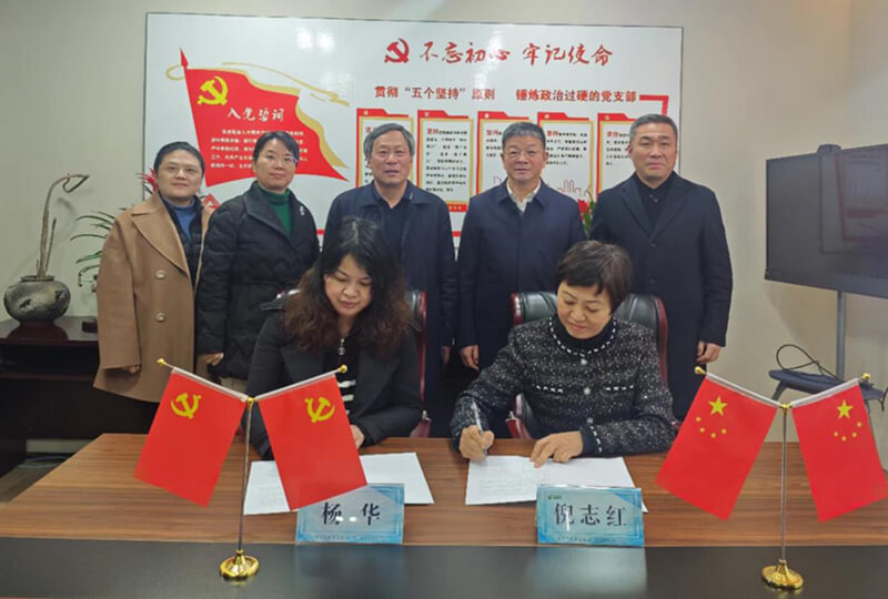 ↑商貿學院倪志紅副書記和集團黨總支楊華書記簽署“蘇商紅盟”結對共建協議