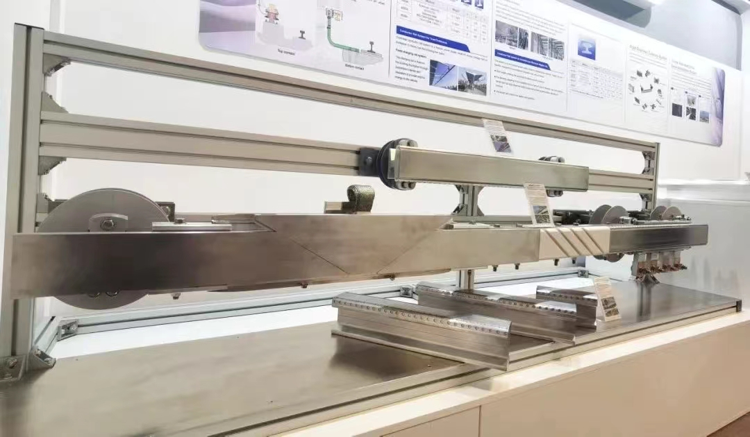 ? ? ? ?此次物華電氣主要展示的鋼鋁復合接觸軌系統(側接觸),適用于跨座式單軌、磁懸浮等小界限或高行駛速度的供電系統。