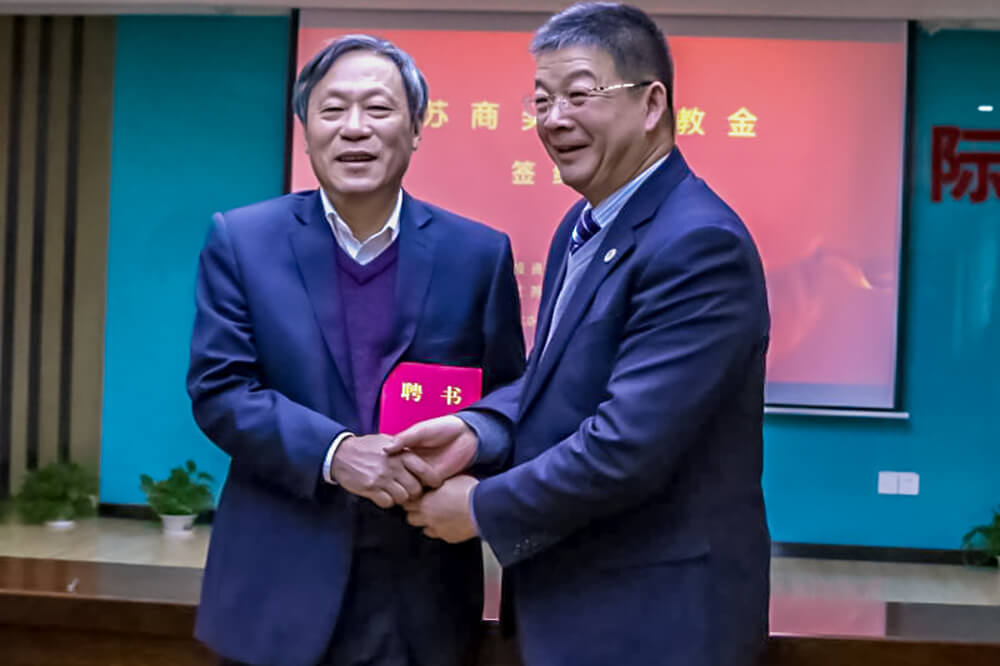 儀式上江蘇商貿職業學院正式聘請陳家俊董事長為客座教授,并頒發了聘書。